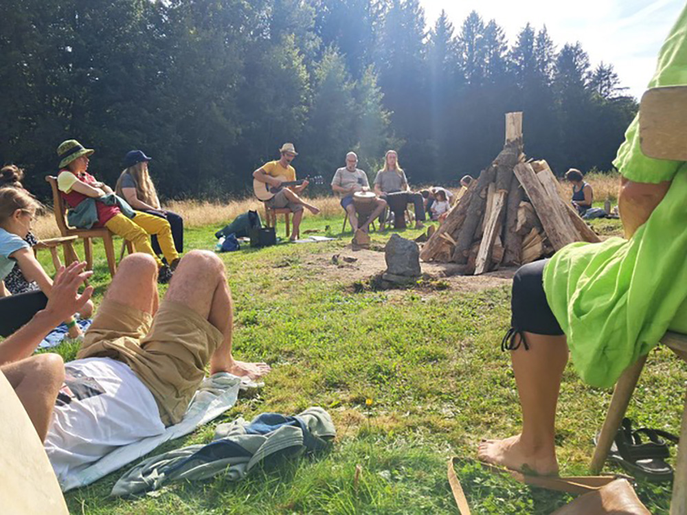 Der Tag begann in den frühen Morgenstunden mit einem besinnlichen und inspirierenden Medicine-Walk, der die Teilnehmer sanft auf den ereignisreichen Tag einstimmte. Die Veranstaltung fand ihren Höhepunkt und gleichzeitig einen stimmungsvollen Ausklang am Abend, als sich die Gäste in einem Kreis zum Singen und für ein gemeinsames Konzert um das große, knisternde Lagerfeuer versammelten. Die besondere Atmosphäre und das Gefühl tiefer Gemeinschaft, das durch den gesamten Tag hindurch spürbar war, hinterließen bei allen Teilnehmern einen bleibenden Eindruck. So waren sich die Besucher einig: Dieser außergewöhnliche Tag sollte unbedingt zur Tradition werden!